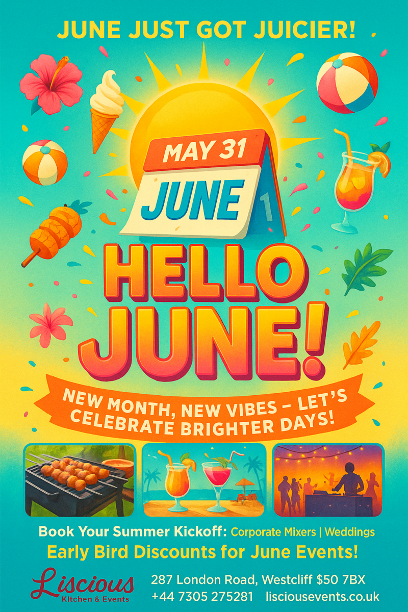 The sun is rising higher, the days are stretching longer, and the air is thick with possibility. Yes, June is finally here—and at Liscious Kitchen & Events, we’re welcoming it with wide-open arms, sizzling BBQ grills, and chilled cocktails ready to clink in celebration!